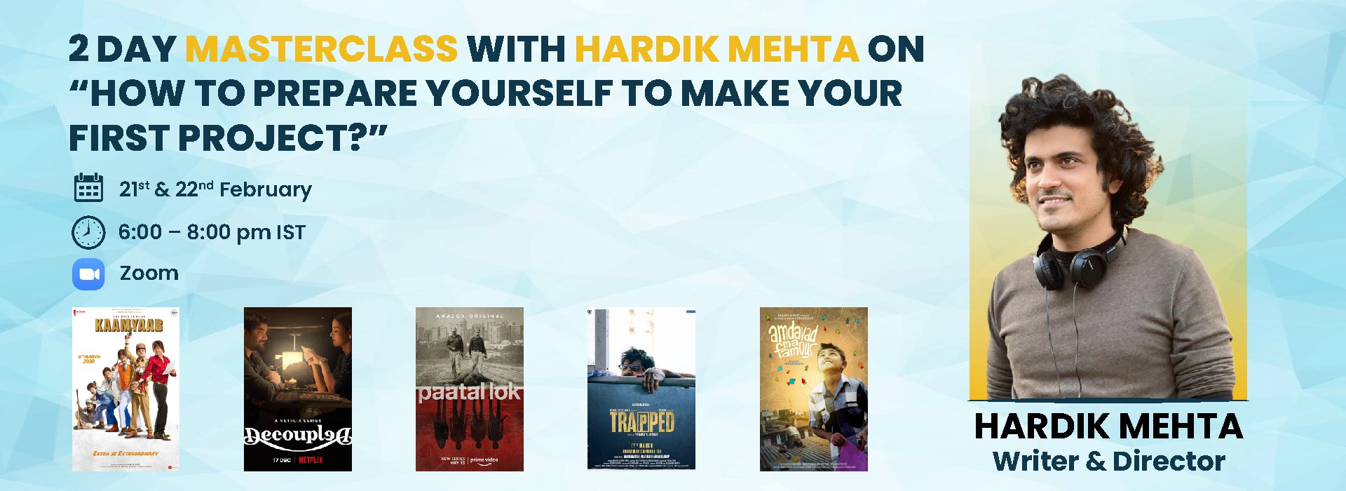 2 DAY MASTERCLASS WITH HARDIK MEHTA ON “HOW TO PREPARE YOURSELF TO MAKE YOUR FIRST PROJECT?”
