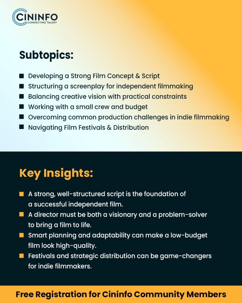 πŸš€ Don’t miss this exclusive opportunity to learn from an industry expert and take your indie filmmaking skills to the next level!